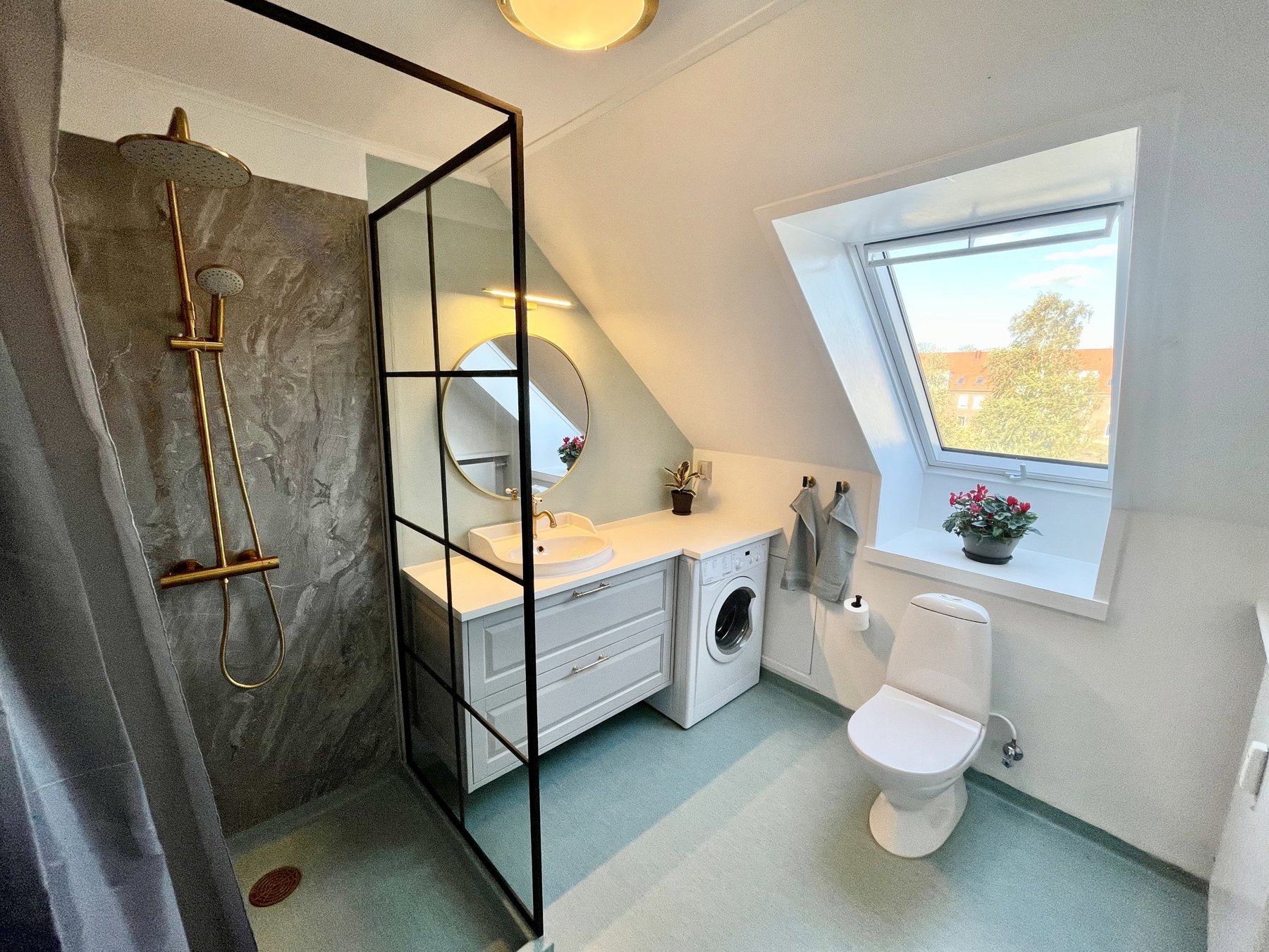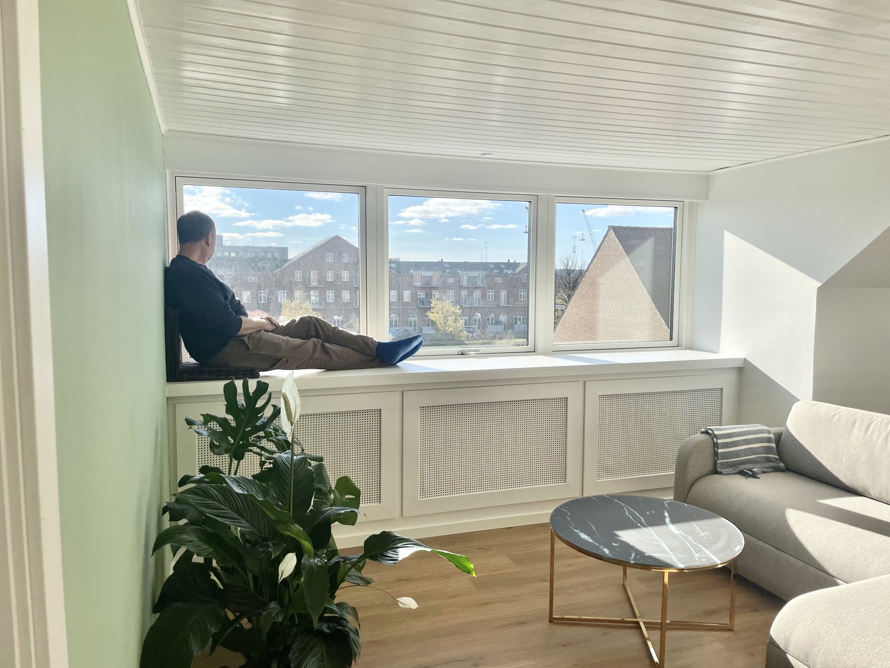Så hvis du er til liv og glade dage med mulighed for fred og ro på samme tid – så ta’ et kik på denne lejlighed. Alt står klart til dig med ny indretning af vinduer, gulve, vægge, køkken, bad …………