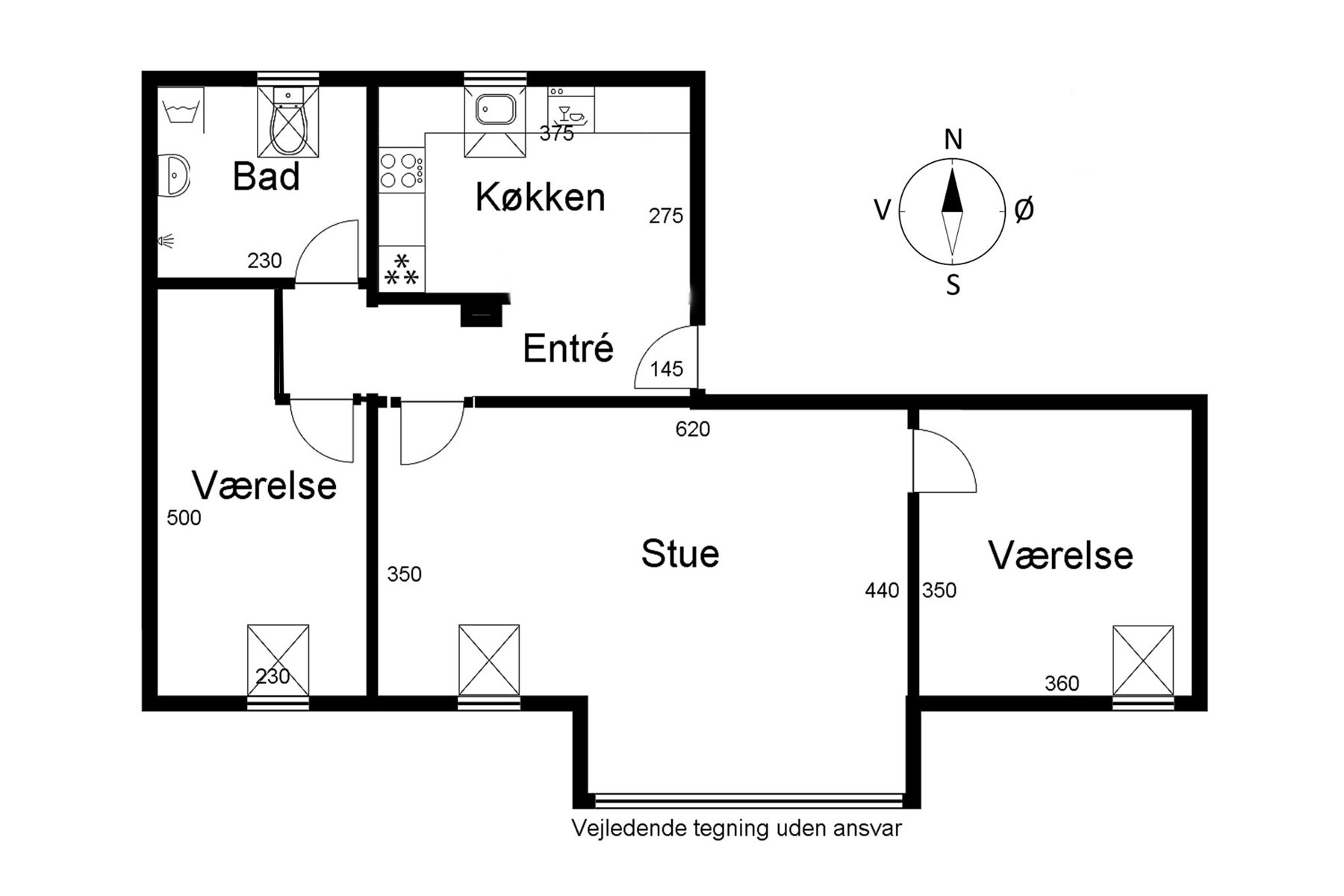 Lejligheden er indrettet med 2 soveværelser, stue, køkken og bad. Værelserne er separerede og ingen af dem er gennemgangsrum.