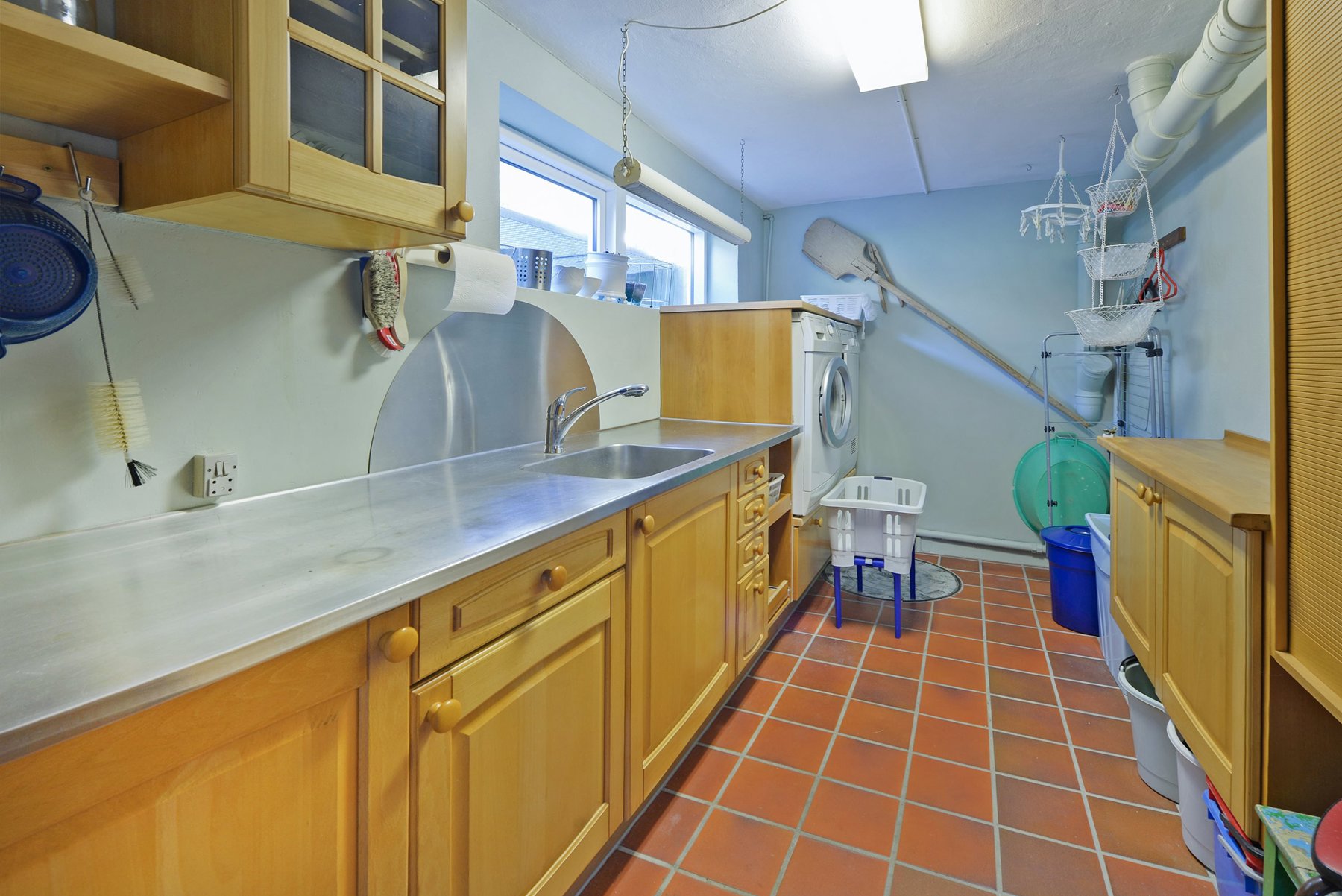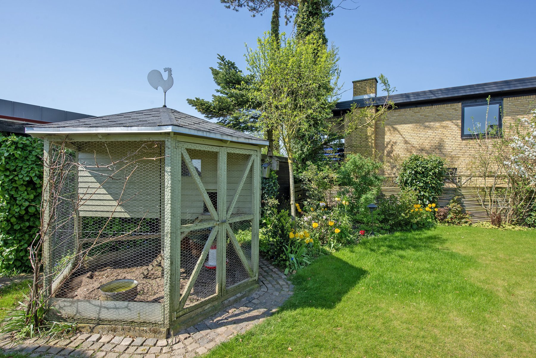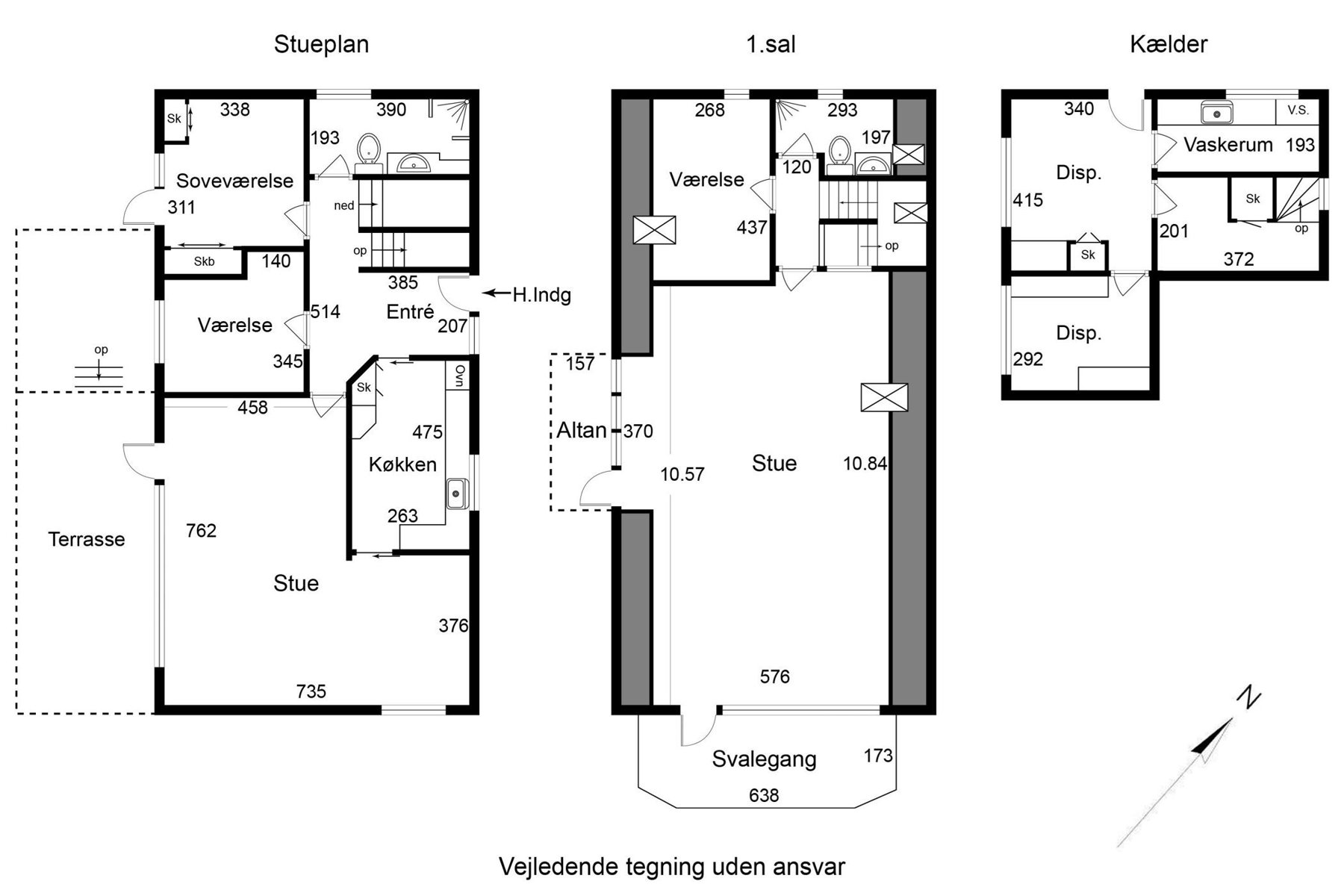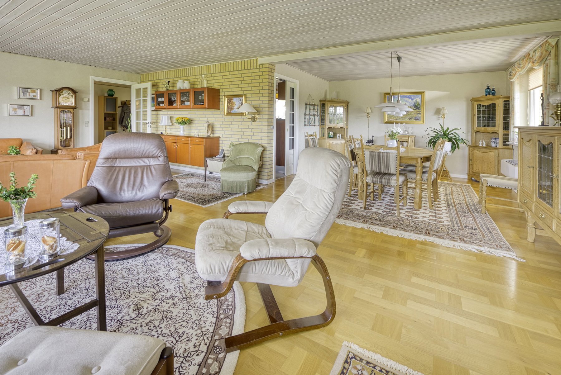 Huset er på 219 kvm fordelt på stue og 1. sal. Herudover er der 40 kvm god og højloftet kælder, som er anvendelig til hobbyrum, vaskerum, viktualie m.v. Bag huset findes garage/udhus opført i træ på samlet 58 kvm. Alt fremtræder velbygget og velholdt – dog ændrer tidens tand på design, farver og indretning, så her er også mulighed for at sætte sit eget præg.