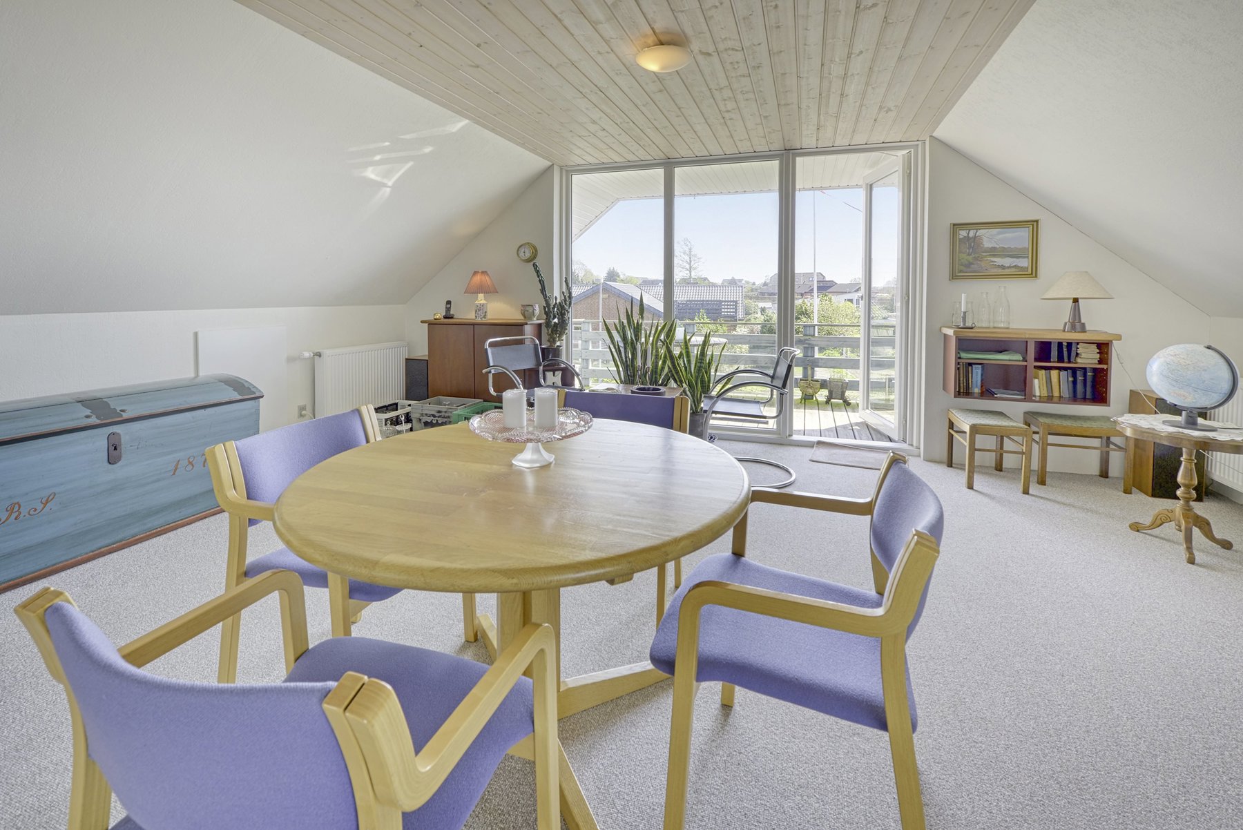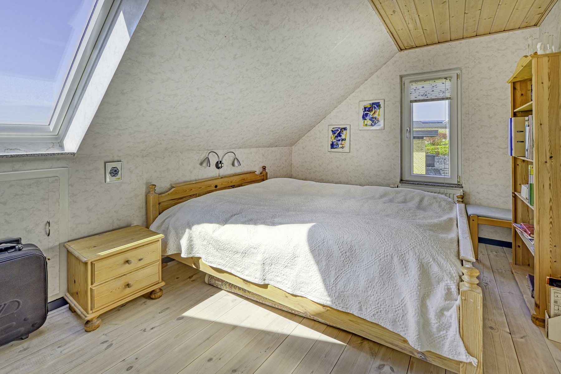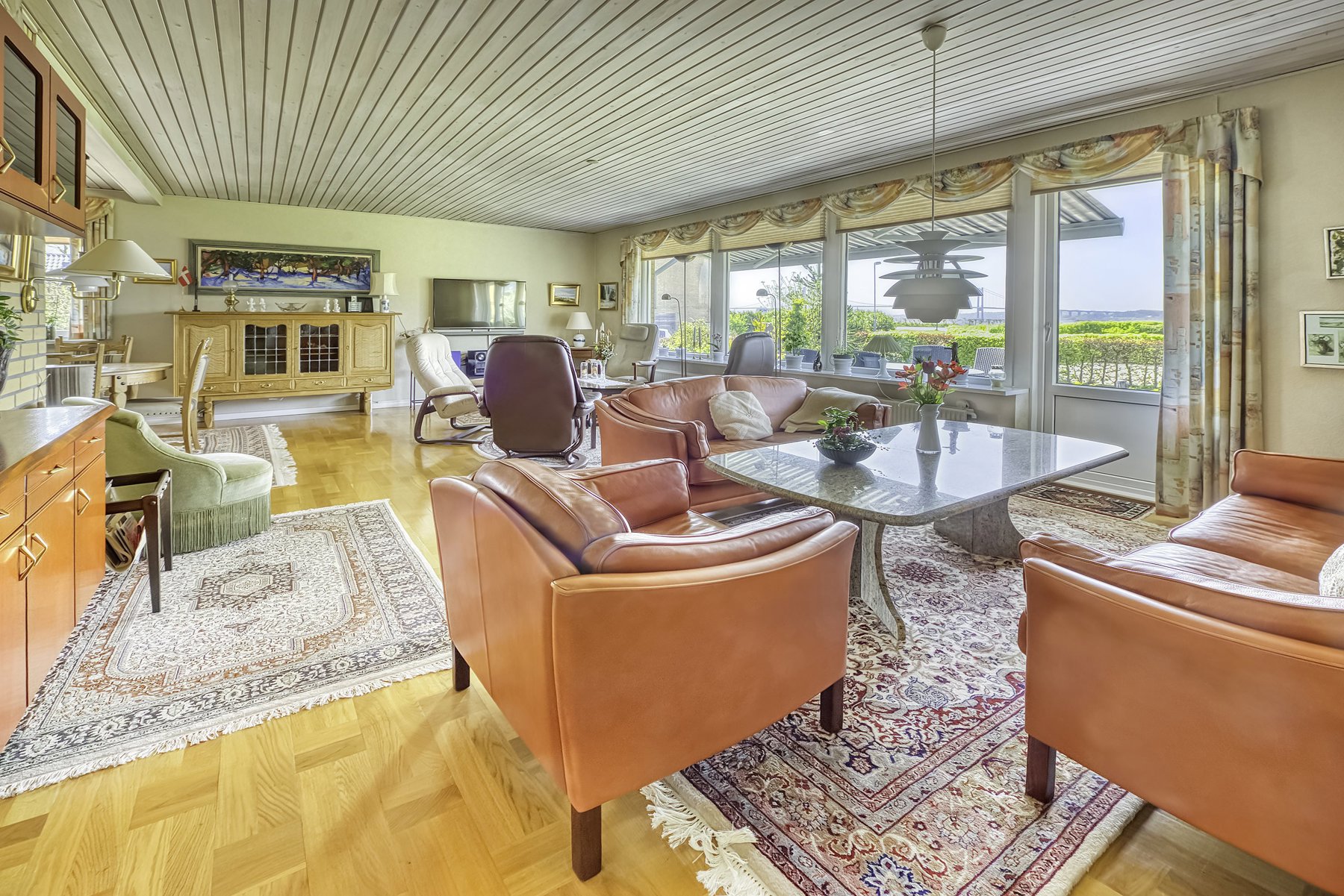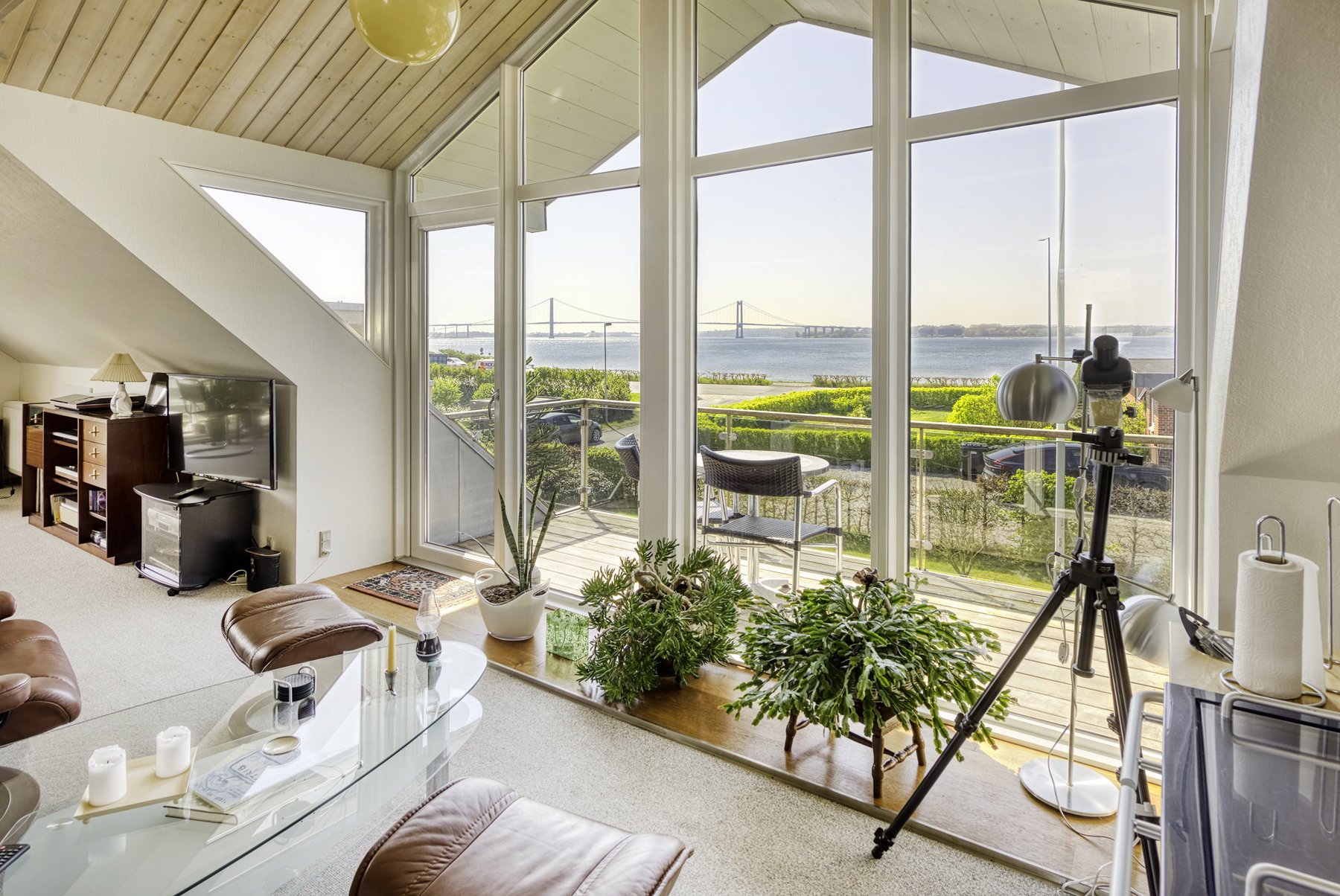 1. salen alene er på 92 kvm. Den er først og fremmest indrettet med soveværelse og badeværelse. Resten er indrettet som een stor stue med udgang til 2 altaner. Den ene altan findes i husets endegavl og en nyere altan er indbygget i en stor kvist med glasparti mod bæltet. Kvisten er en ændring som nuværende ejer har tilført huset nogenlunde samme tid som taget blev skiftet. Det store rum åbner op for mange forskellige muligheder mht. indretning. Det kan være ekstra værelser, multirum for hele familien, arbejdslokaler til liberalt erhverv – bestem selv hvordan du vil anvende et lokale på ca. 65 kvm med panoramaudsigt over Lillebælt.