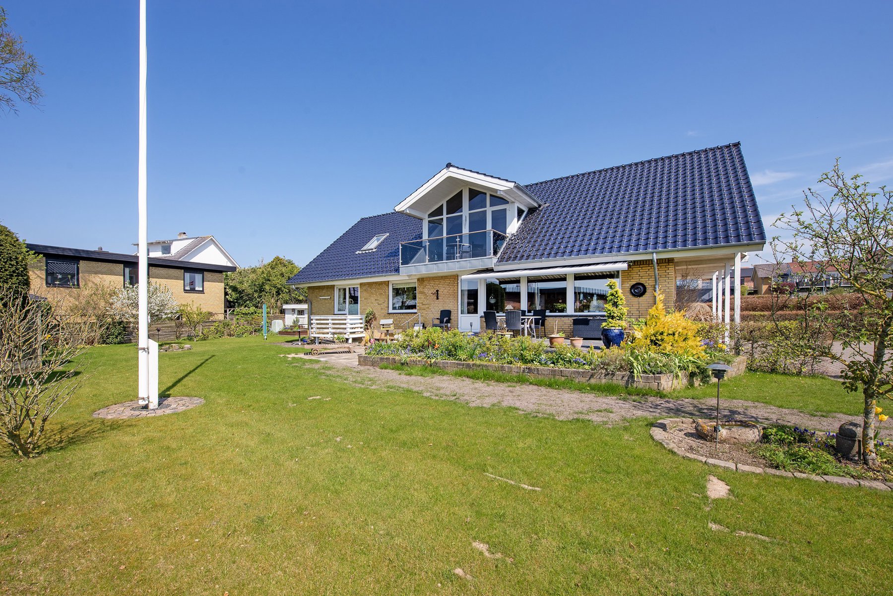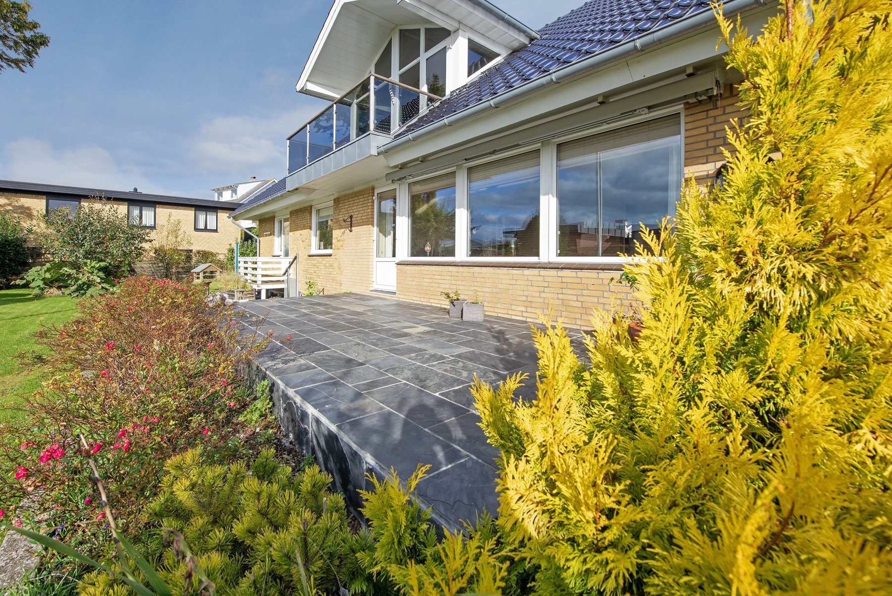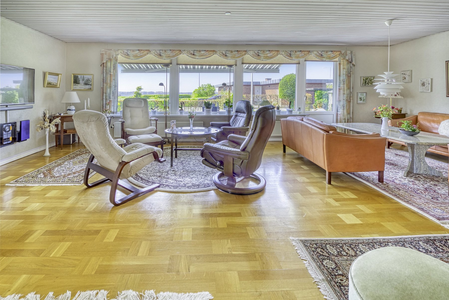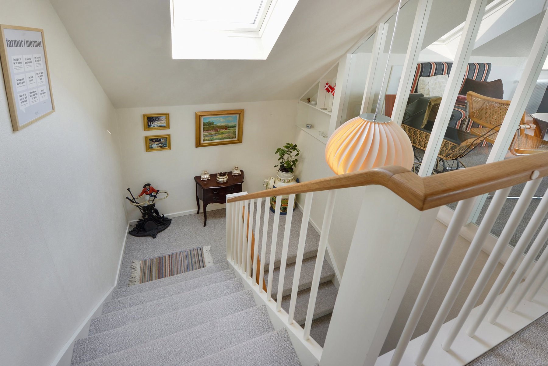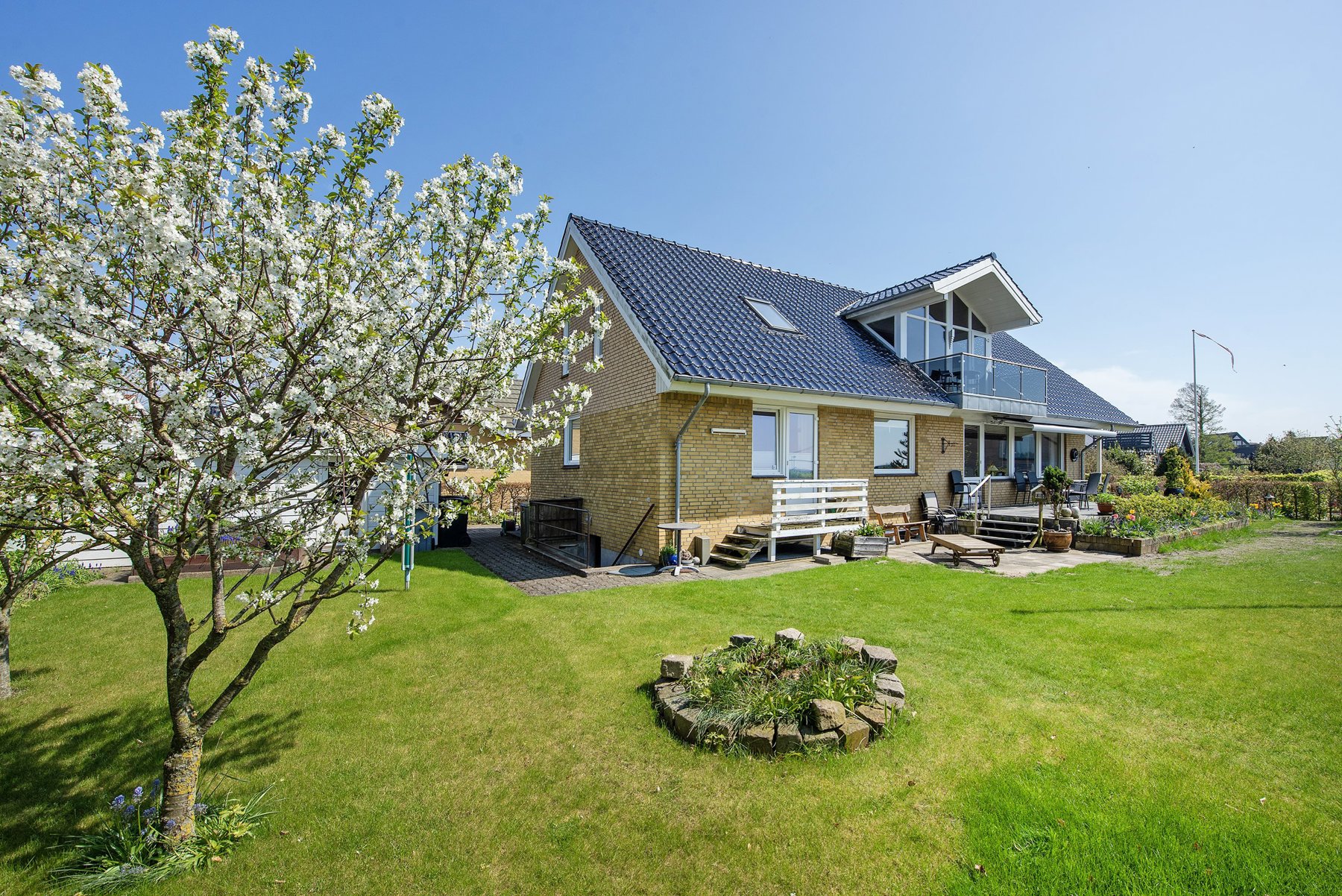 1. salen alene er på 92 kvm. Den er først og fremmest indrettet med soveværelse og badeværelse. Resten er indrettet som een stor stue med udgang til 2 altaner. Den ene altan findes i husets endegavl og en nyere altan er indbygget i en stor kvist med glasparti mod bæltet. Kvisten er en ændring som nuværende ejer har tilført huset nogenlunde samme tid som taget blev skiftet. Det store rum åbner op for mange forskellige muligheder mht. indretning. Det kan være ekstra værelser, multirum for hele familien, arbejdslokaler til liberalt erhverv – bestem selv hvordan du vil anvende et lokale på ca. 65 kvm med panoramaudsigt over Lillebælt.