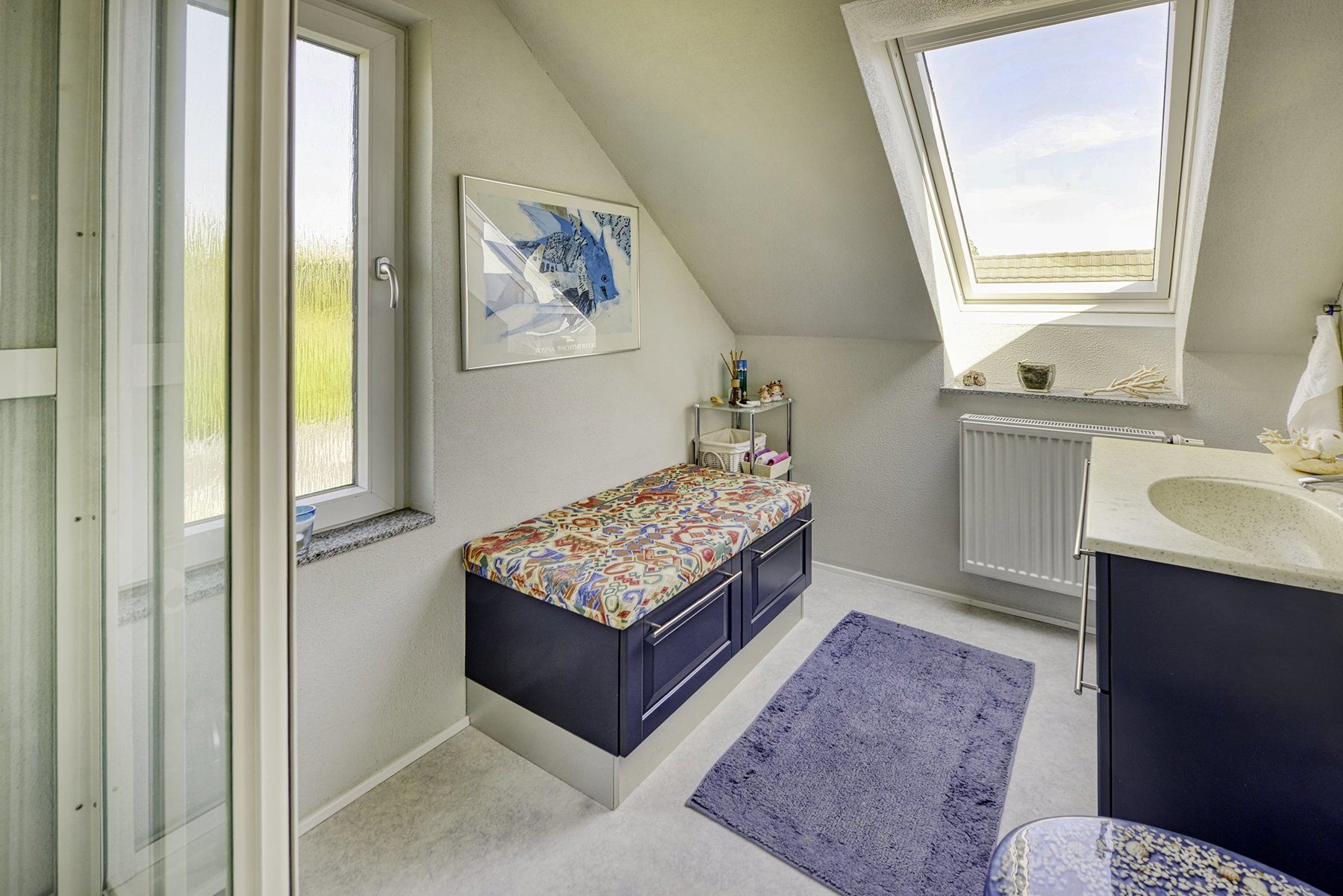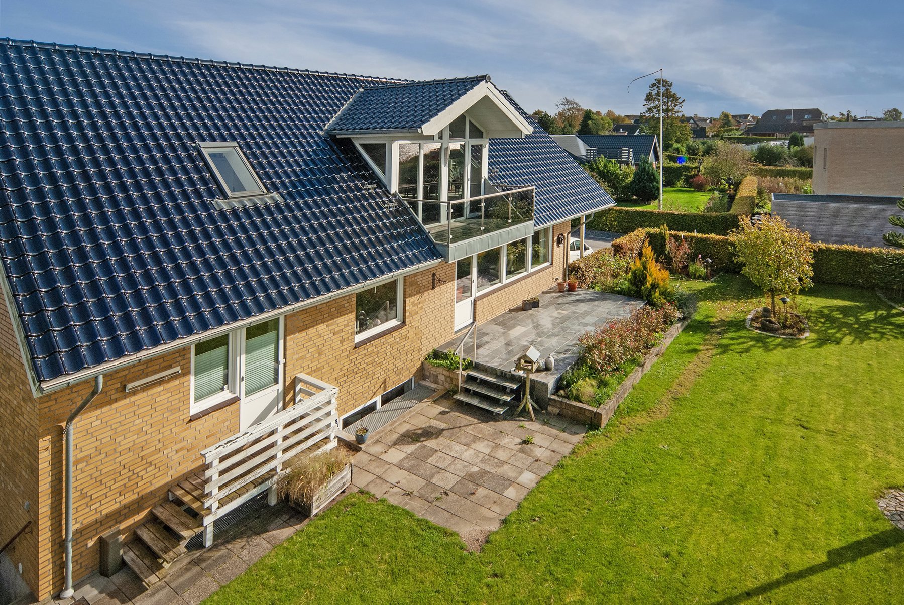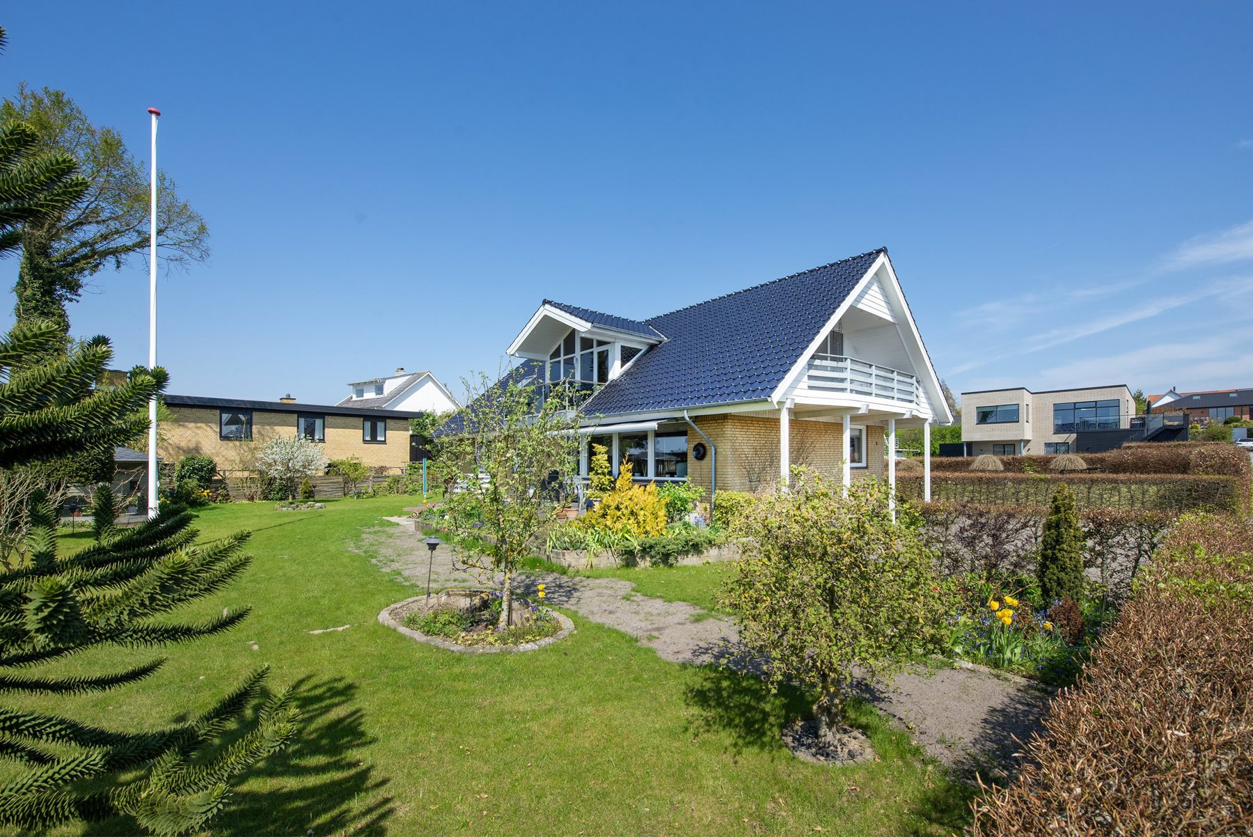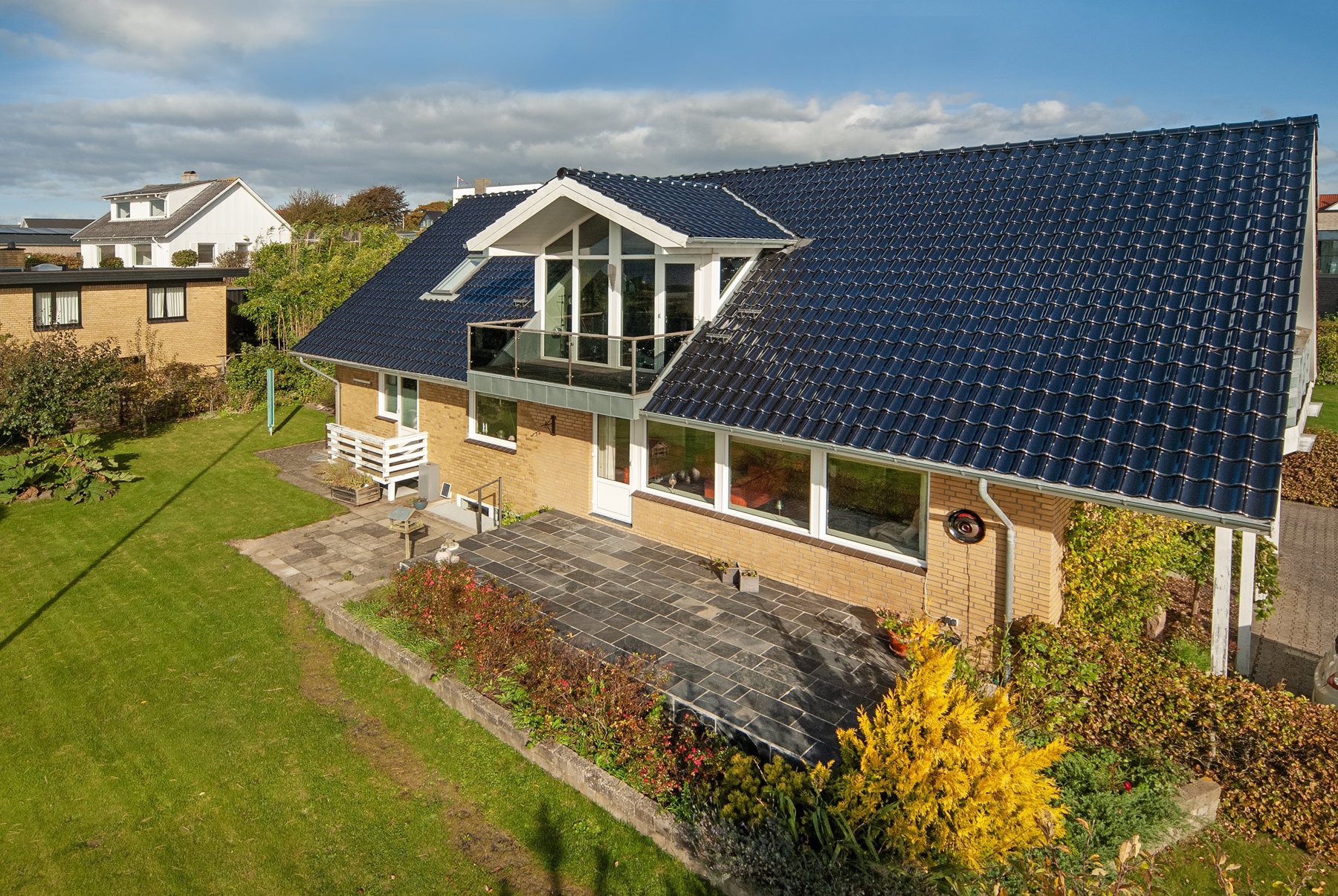 1. salen alene er på 92 kvm. Den er først og fremmest indrettet med soveværelse og badeværelse. Resten er indrettet som een stor stue med udgang til 2 altaner. Den ene altan findes i husets endegavl og en nyere altan er indbygget i en stor kvist med glasparti mod bæltet. Kvisten er en ændring som nuværende ejer har tilført huset nogenlunde samme tid som taget blev skiftet. Det store rum åbner op for mange forskellige muligheder mht. indretning. Det kan være ekstra værelser, multirum for hele familien, arbejdslokaler til liberalt erhverv – bestem selv hvordan du vil anvende et lokale på ca. 65 kvm med panoramaudsigt over Lillebælt.