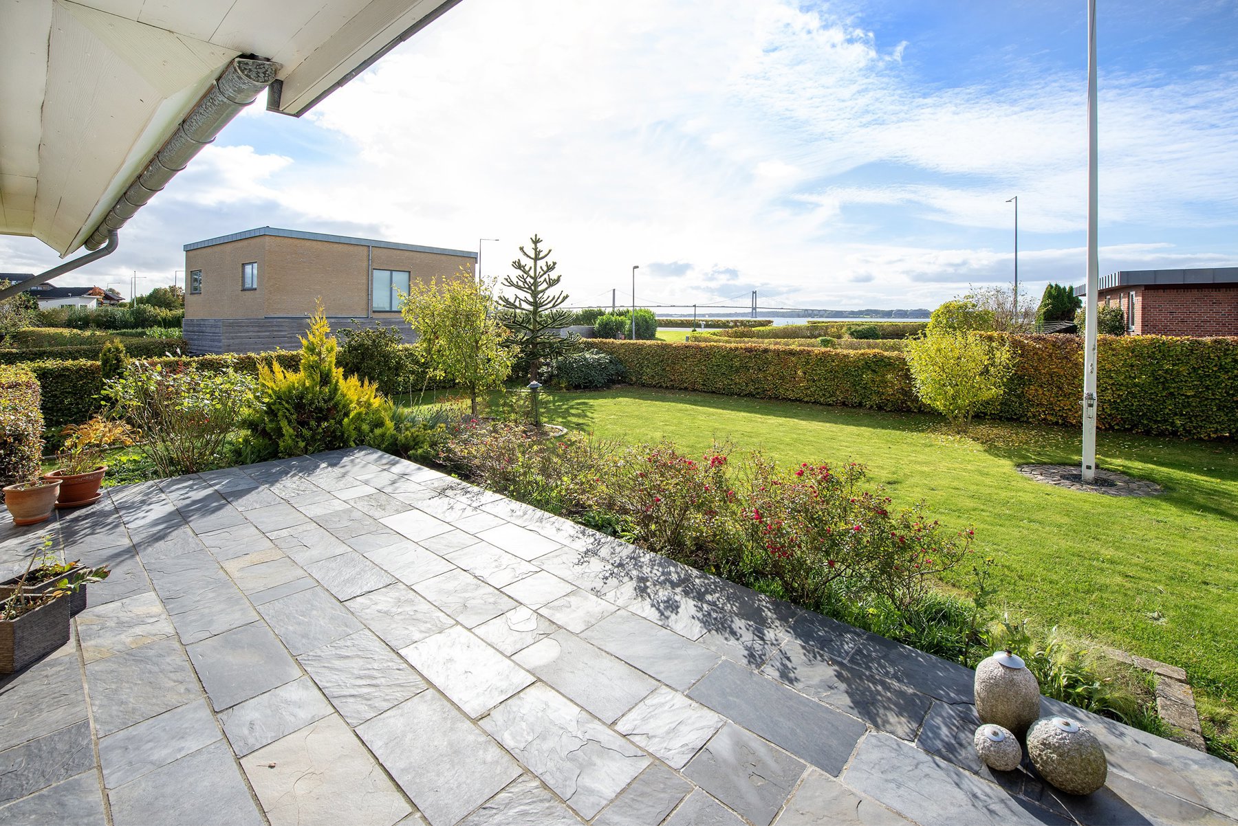 Området er i sig selv et af de smukkeste steder i landet. Der findes næsten uendelige muligheder for at nyde naturen – både i skov og ved vand. Man kan fra altanen følge marsvinene lege i bæltet, og ved det årlige “Rock under broen” har man første parket. Lystbådehavnen ligger kun 500 meter fra huset, og den hyggelige bymidte og havnefront i Middelfart nås på kun få minutter.