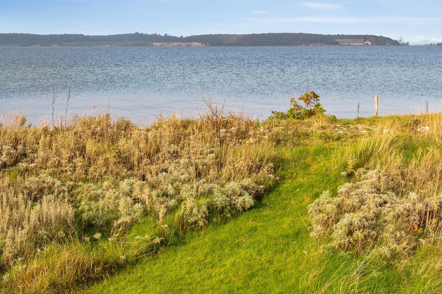 Helt unik beliggenhed på halvø direkte til Lillebælt, lige syd for Føns og kun ca. 10 km fra den fynske motorvej ved Nørre Aaby. Jordstykket på knap 11 ha ligger i ét samlet stykke rundt om ejendommen og på tværs af halvøen således, at der til ejendommen hører strandgrund både mod nord og mod syd. Rudvej slutter ca. 300 m efter ejendommen, hvor der findes 2 naboejendomme – så trafikken er meget begrænset, og vejen også ganske smal. Her er der fred og idyl – og ikke mindst – frisk havluft alle dage. Uanset hvilken retning vinden blæser, fornemmer man den friske salte havluft direkte fra det smukkeste farvand vi finder i Danmark.