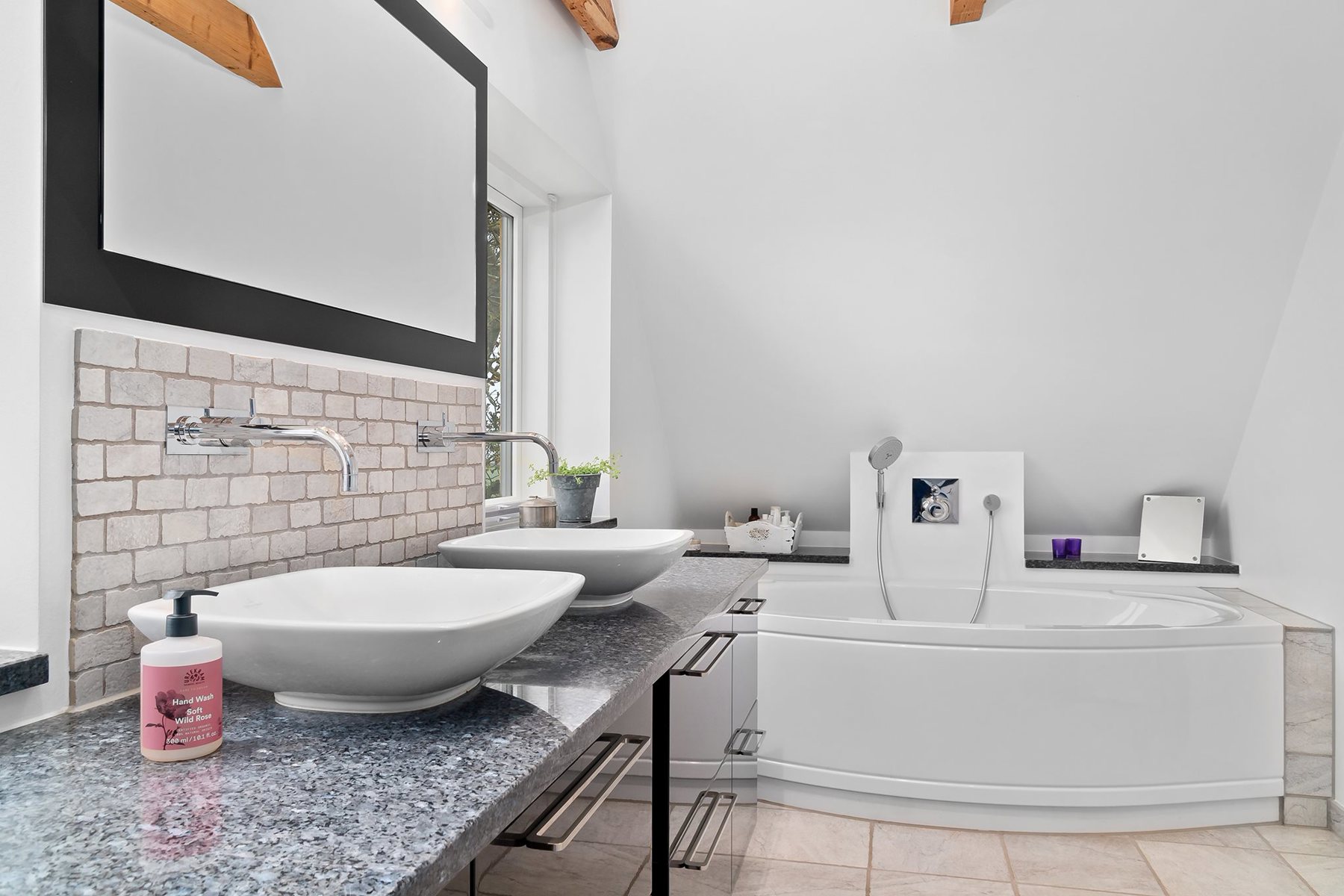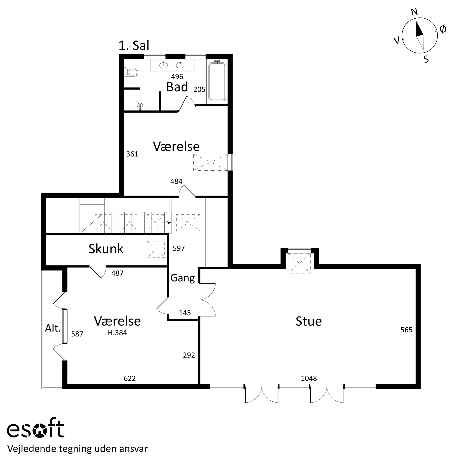 Stuehuset er på 331 kvm fordelt på 2 plan og herudover findes 72 kvm flot indrettet kælder. Hele stuehuset er renoveret fra A – Z i år 2011 og alt fremtræder lækkert og indflytningsklart. På 1. salen er bl.a. indrettet en stor panorama-stue med flot sydvendt udsigt over Lillebælt med Brandsø og Jylland i baggrunden. Herudover stort kontor med udgang til gavlaltan. Herfra er der ligeledes panoramaudsigt og man kan se Lillebælt både mod nord, syd og vest. Den sidste del af 1. salen er indrettet med master bedroom og tilhørende badeværelse med både bruseniche og badekar. Hele 1. salen er renoveret således, at alle gamle bjælker er synliggjorte og i dag fremtræder som en del af den flotte indretning.