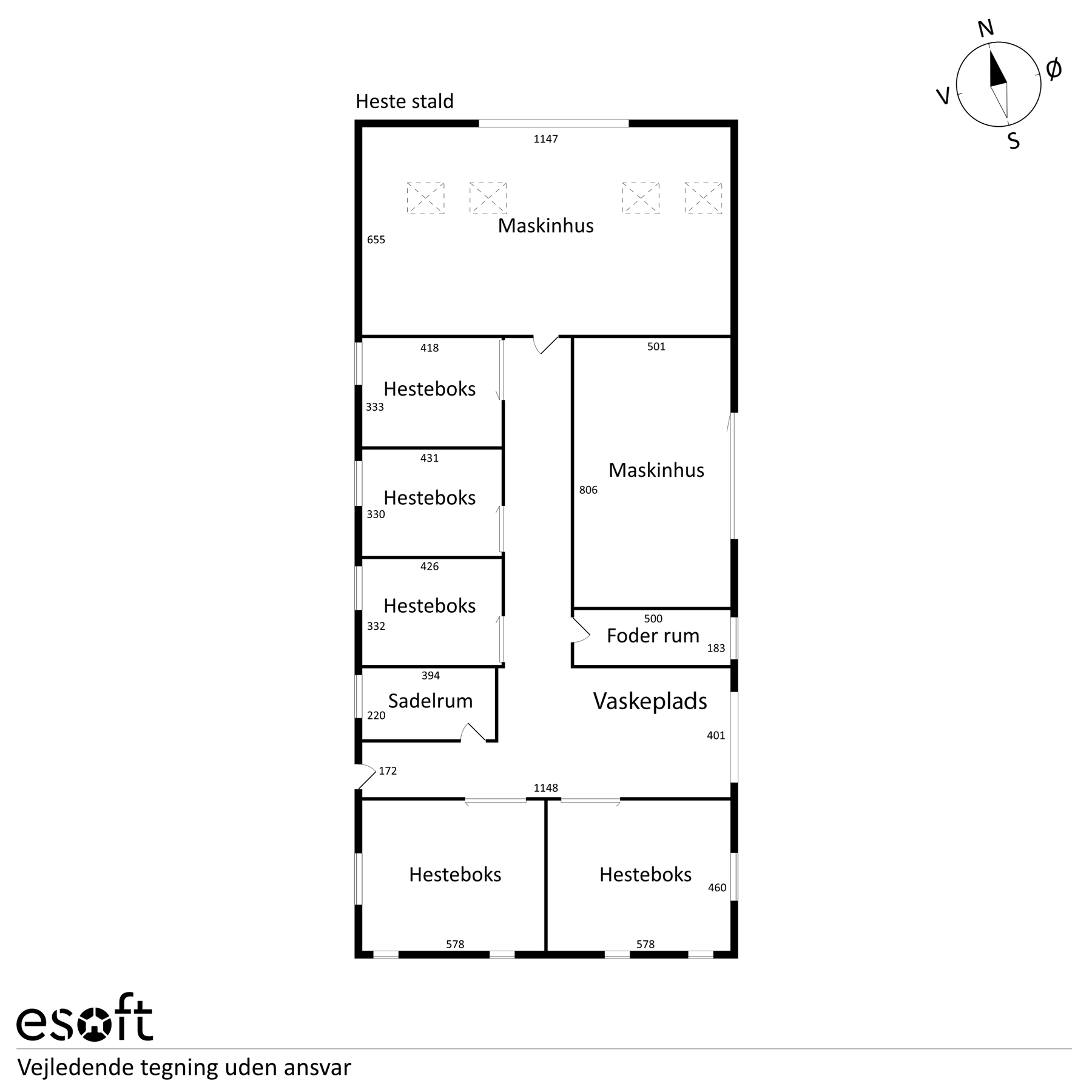 Nuværende ejer har anvendt ejendommen i forbindelse med opdræt af islandske heste, og der er i år 2005 opført hestestald på 312 kvm med enkeltbokse, løsdriftsstald, sadelrum, vaskeplads, maskinhal og garage. Pt. er der 3 separate bokse + løsdrift, men indretningen kan let ændres såfremt der er behov for flere bokse. Udenfor findes marker med folde, løsdriftsbygninger / læskure (i alt 4 stk), ridebane, rundel m.v. Herudover findes sidelænge til stuehuset med garage, tidligere stald, carport m.v. på 208 kvm samt uudnyttet loft på sidelængen.